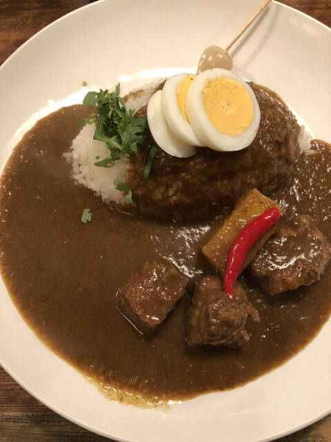 駅から徒歩5分程度。 雑居ビルの2F。 ドアが開け放しになった、 カウンターだけの小さなお店です。 メニューの最上段はキーマカレー、 その他、季節のカレーや、 洋風... 続きを読む»