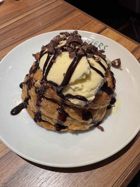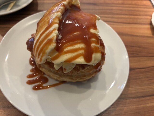 焼きたてアツアツのアップルパイの上に冷た~いアイスクリームをのせて!