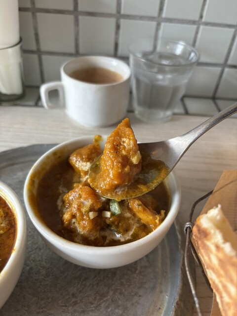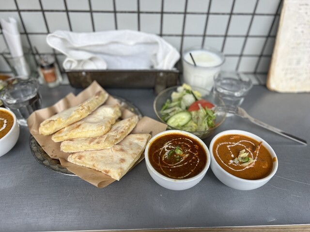 土曜日の12時過ぎに2名で訪問。2組ほどの待ち列に並んで、15分ほどで着席できました。 今回いただいたのはAセット(1300円)で、ドリンクをLサイズのブルーベリーラッシーにし(220円)、はちみつチーズナンに変更(330円)。総額1850円でした。 まずドリンクが提供され、10分ほどで... 詳細を見る