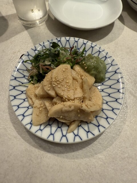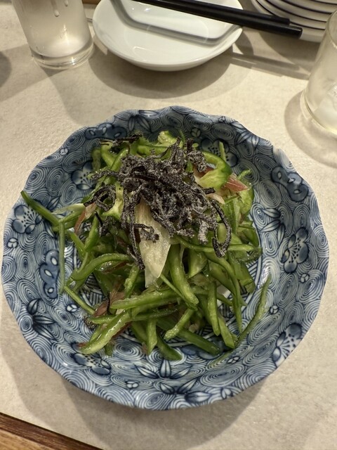 まずはお通しのさっぱりとしたこんにゃくソーメンと「本日のおばんざい3種盛り」でほ...