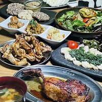贅沢!もも吉名物骨付きもも焼きが1人1本はもちろん親鳥鉄板やチキン&チップスなどもも吉のエース級が盛りだくさんの超お得なコースです!