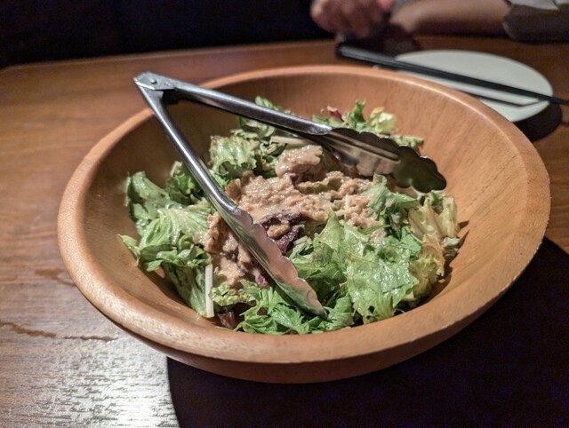 自家製ドレッシングのサラダをお通し代として頂戴しております。 |