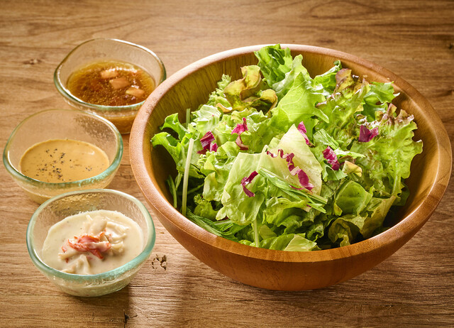 自家製ドレッシングのサラダをお通し代として頂戴しております。 |