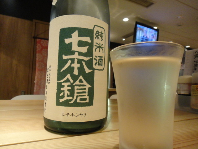 目線を冷蔵ケースに移し、決めたのが最近のお気に入り滋賀の七本槍・純米をグラスで。