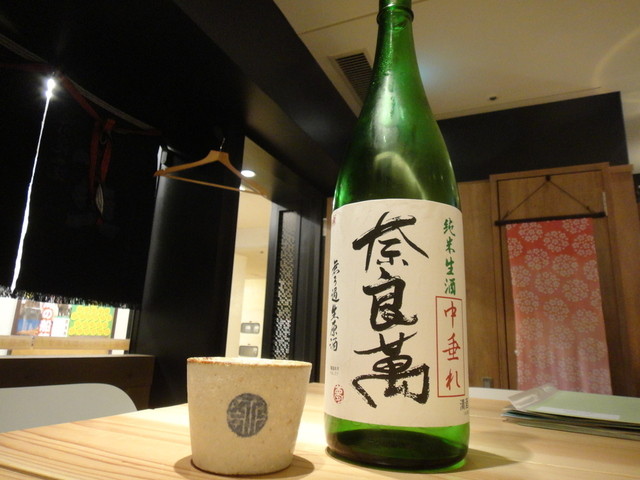 2杯目の酒は、福島の奈良萬・無濾過生原酒、今度はそば猪口で。