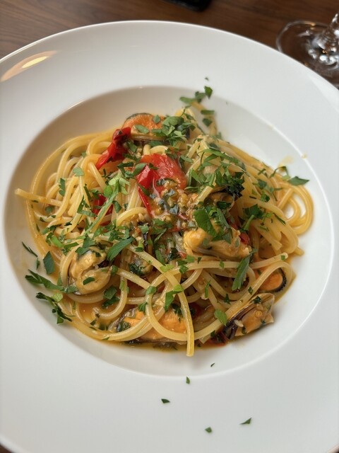 目的はこの鰻のパスタで、予想以上においしかった! 醤油や「イタリアン魚醤」とか旨を味倍増させる物を使用しなくても、トマトや香辛料のうま〜い使用で、白焼きだけされた鰻を蒲焼に負けないようなコクを引き出せるとのことでした。本当に鰻の香味を最大限に発揮したと思います(´⊙ω⊙`)! 香辛... 詳細を見る