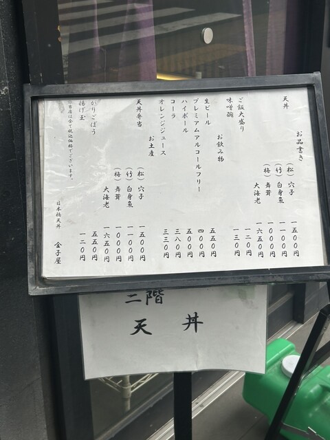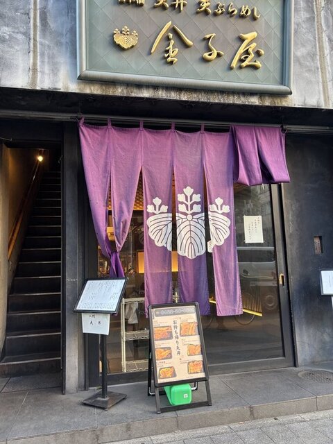 お昼時は平日でも並んでいる金子屋さん。 1階は天ぷらめし、2階は天丼屋さんになっており、それぞれの列で並びます。