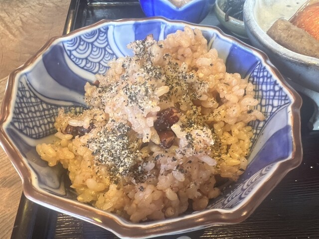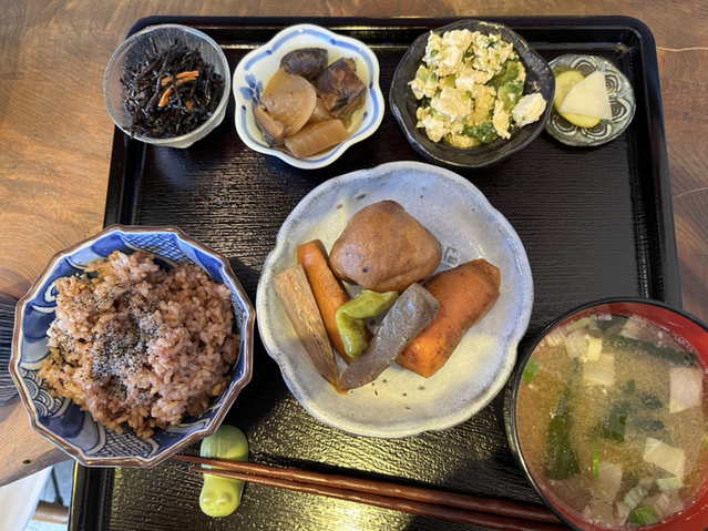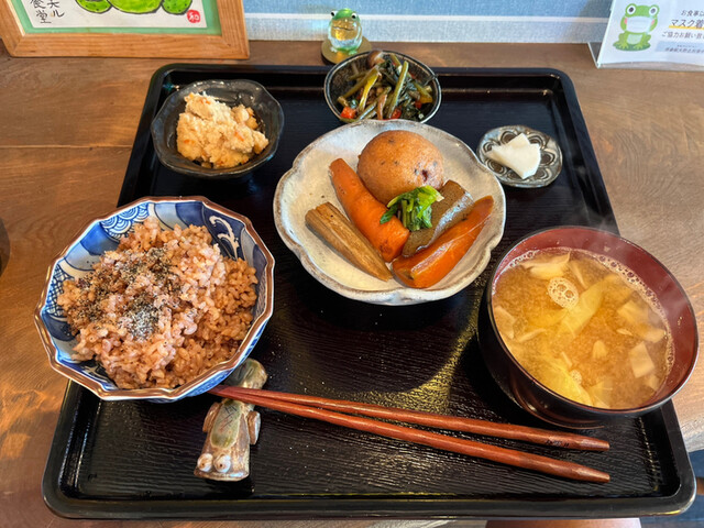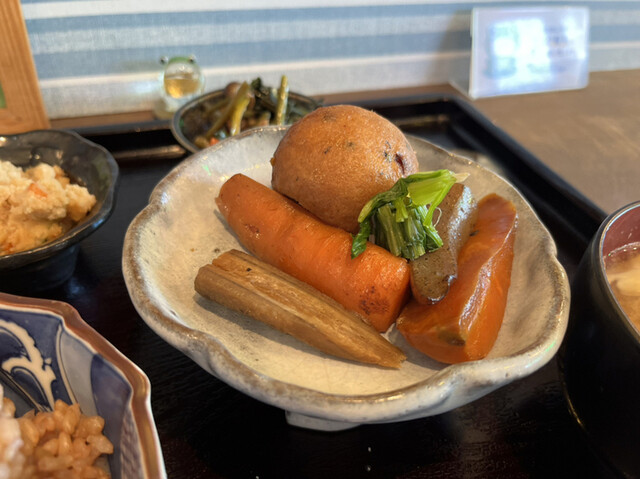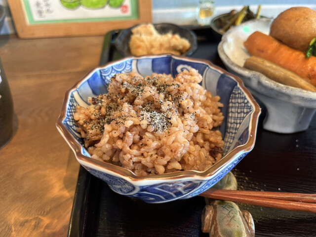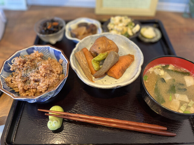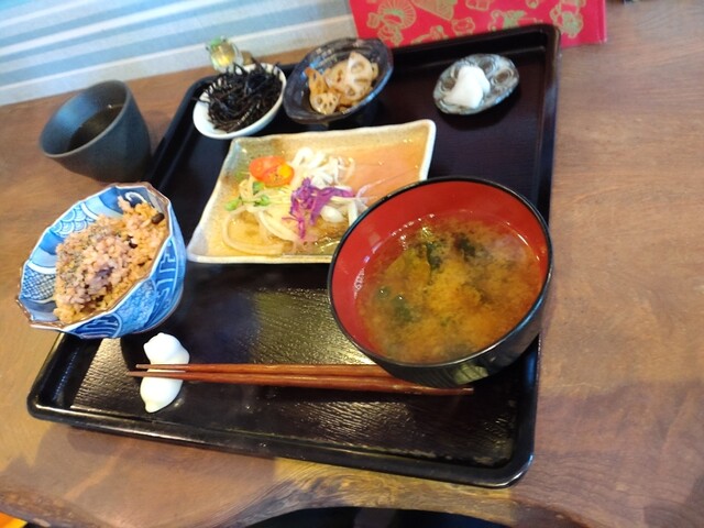 地元のマダム?が家庭料理をランチセットとして出している感じの店。お米部分が酵素玄米で健康志向になっている。鯵の南蛮漬的なものをメインに選んだ。他は煮物や豆腐ハンバーグ等。副菜も4つ... 詳細を見る