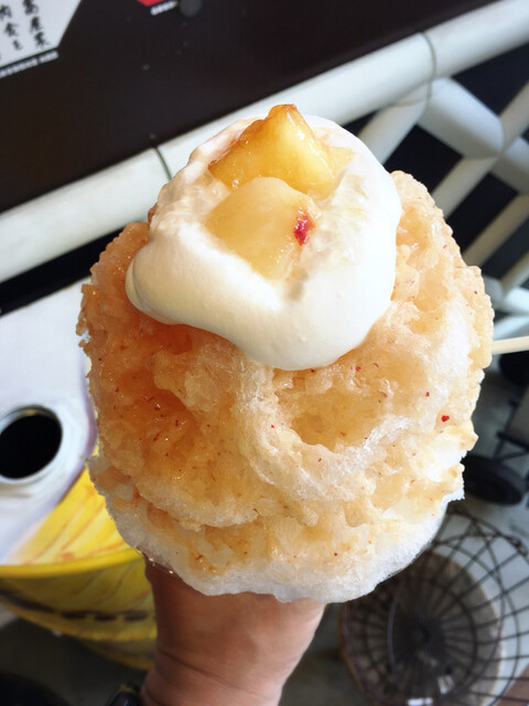 テイクアウトのかき氷は持ち歩きしやすいように削っており。また