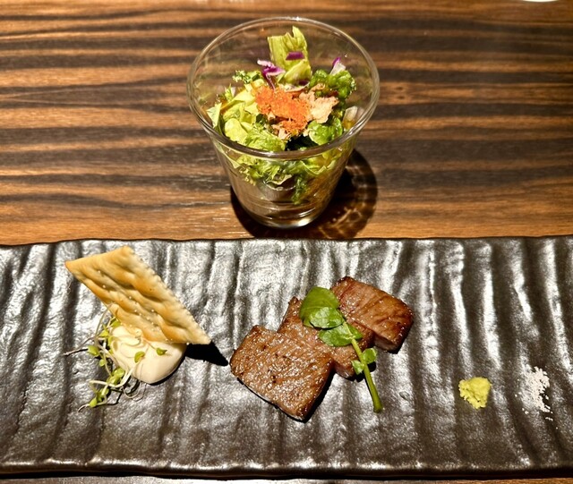 佐賀県産ブランド黒毛和牛“伊万里牛”と豊洲市場から厳選する鮮魚・旬野菜を心を込めた逸品料理にしてご提供いたします。四季折々の食材と自慢の特選伊万里牛・鮮魚を盛り込んだ特別なコースも仕立てております。唎酒師とソムリエが選び抜いた日本酒・ワインと共にご堪能いただけます。店内は落ち着きある和モダンな空間を演出。大切な人と共に特別なひとときをお過ごしください。
