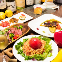 雑誌、TV掲載で問い合わせ殺到の爆弾トマトスパゲッティが食べられるのはこのコースだけ!大きなトマトを丸ごとどうぞ♪野菜ソムリエが厳選したお野菜と自家製のローストビーフも人気です。全9品4500円と大変お得なコースです!!※季節によりコース内容は変更する可能性がございます。お写真はイメージです。