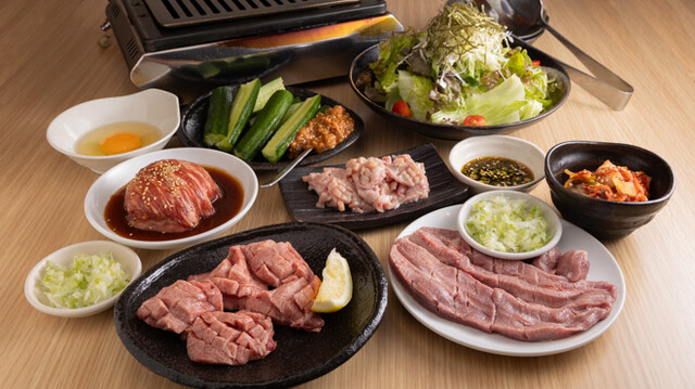 メイン食材の“朝獲れ肉”は、群馬県から直送され朝締めたばかりのため鮮度抜群!人気No.1の「生タンステーキ」をはじめ、「レバー&ハツ」や希少部位「のど」など、新鮮なお肉ならではの濃厚な旨味をご堪能いただけます。平日限定の飲み放題や、豊富な品揃えのドリンクとご一緒にどうぞ!居心地の良い広々とした空間には、テーブル50席を完備◎気軽なお食事から最大50名様の各種宴会まで、幅広いシーンでご利用ください。