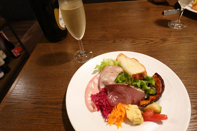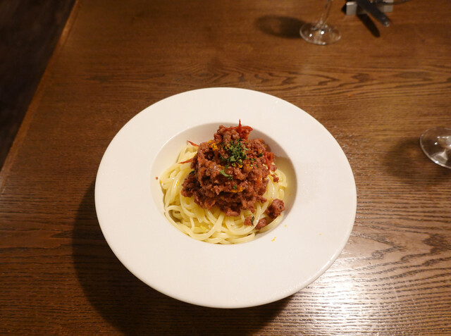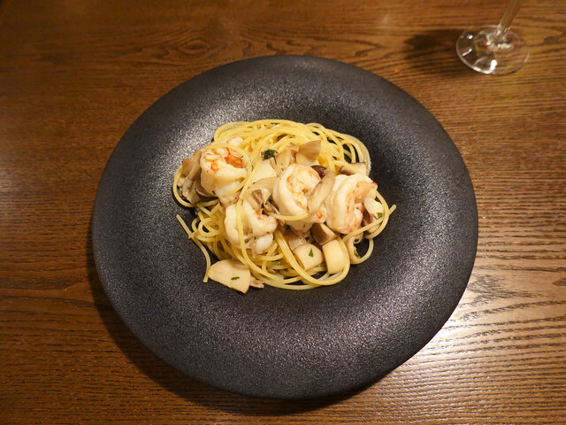 吉祥寺の南口、井之頭公園側の路地裏のイタリアンレストランです。大きな窓の奥に薄暗くシックな店内。予約していたカウンター席に案内されます。落ち着いて寛げる雰囲気です。函館から海産物を直送しているのが売りのようですが、壁にも洒落た函館の街のポスターが貼られています。バインダーに挟まれた紙に書かれたメニューを見て、丁寧な説明を受け、どれも美味しそうな内容に悩みながらも数品を注文しました。ワインを飲み、キ...