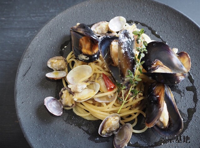 あさりとムール貝のガーリックソースパスタ (by お店)