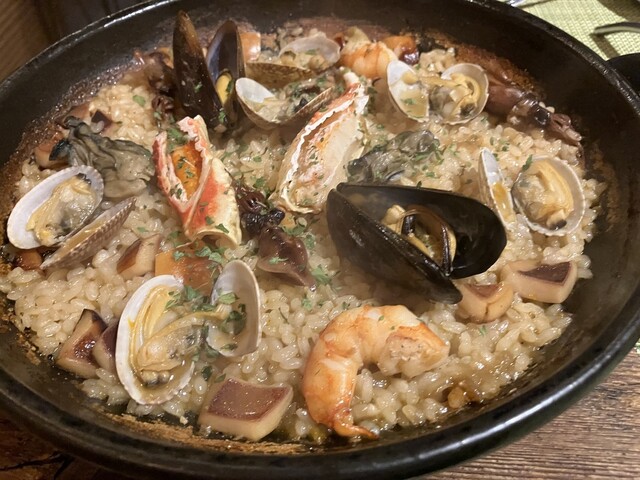 週末に予約して訪問しました。 今回はランチセット(2,250円)を注文しました。 内容はオードブル、スープ、パン、パエリヤ(マグレブ風・魚介・イカ墨から選択)の構成で、 今回... 詳細を見る