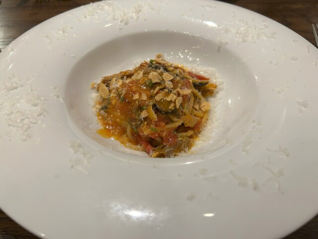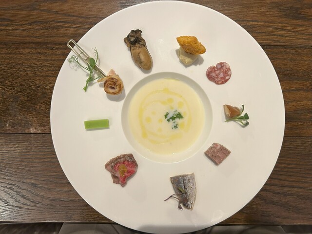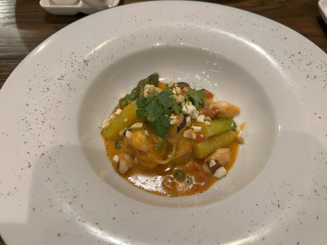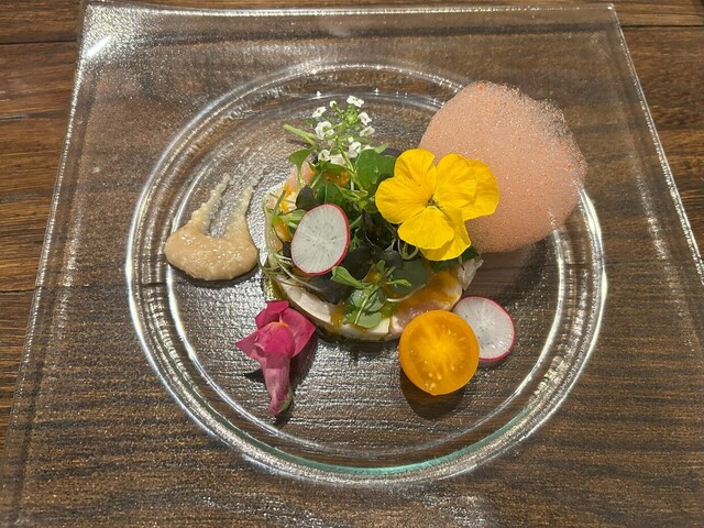 イタリアンなのかと思っていたら、日本食材を使ったフレンチの創作料理という感じでした。色々な国の料理を日本の食材でアレンジされており、新しい斬新な料理でした。見た目・味・食感にこだわり抜き、素晴らしいエンターテインメントです。ワインのセレクトも良く、グラスや食器にも拘りを感じました。
