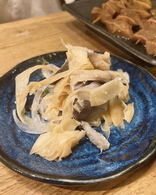 照りのあるタレがしっかり絡み、部位ごとの食感が分かりやすい。しろやシマチョウはぷるっと、菊脂はコク強め。脂は生ビールで流すとちょうどいい。