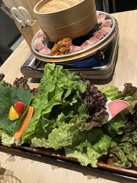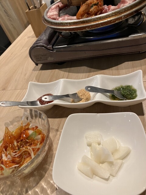 ポッサム サムギョプサルよりお年寄りには食べやすい 家族で予約して訪問しました 最近に出来たお店の様です。割とモダンな内装です サムギョプサルとポッサム、チヂミをオーダー これで大人3人+子供2人で満腹でした サムギョプサルはお店の方が焼いてくれます ポッサムはさっぱりしていて我々はこちらの方が好みです 子供達はサムギョプサル いずれもとても美味しくいただけました ... 詳細を見る