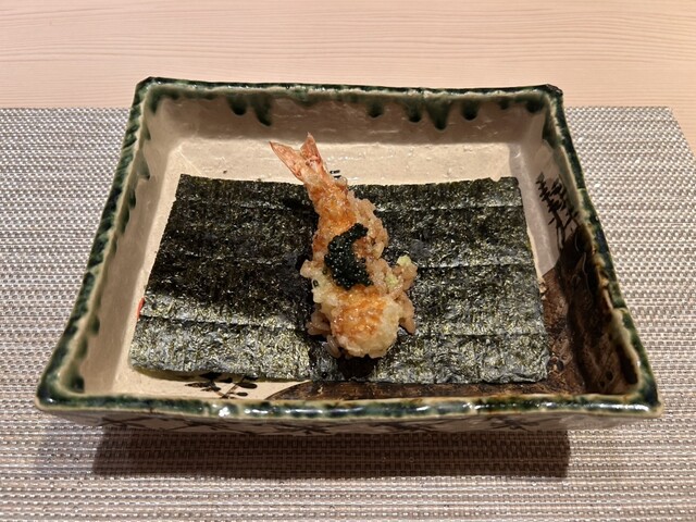 幾多の経験で培った大将の鋭い感性が光る、遊び心溢れたつまみと天ぷら、伝統かつ正統をゆく江戸前鮨との計算し尽くされた対比が一つのコースの中で完結。