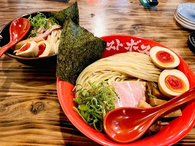 祝日23:10頃 伺いました。 店内7割の客入り、半分くらいは 居酒屋として利用してそうでした。 着席してメニューで注文。 魚介豚骨つけ麺 並盛250g(1100円... 詳細を見る