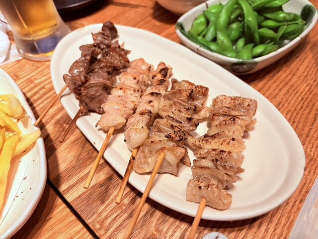 手羽先唐揚げのカリッとした食感と焼き鳥の香ばしさが両方楽しめる居酒屋。手羽先はジューシーで味付けもしっかり、お酒との相性も抜群です。焼き鳥も一本ごとに丁寧に焼かれていて飽きずに楽しめます。店内はカジュ...