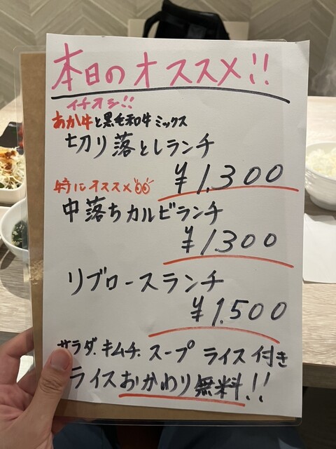 お肉はとてもおいしかったです!大人はとても満足しましたが、この日ライス大を3回おかわりした中学生の息子的にはもっとガツガツいきたかったようなので次は大人同士でお肉を楽しみたいと感じました。ホルモンもす...