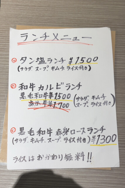 焼肉ランチは2000円くらいす...