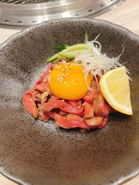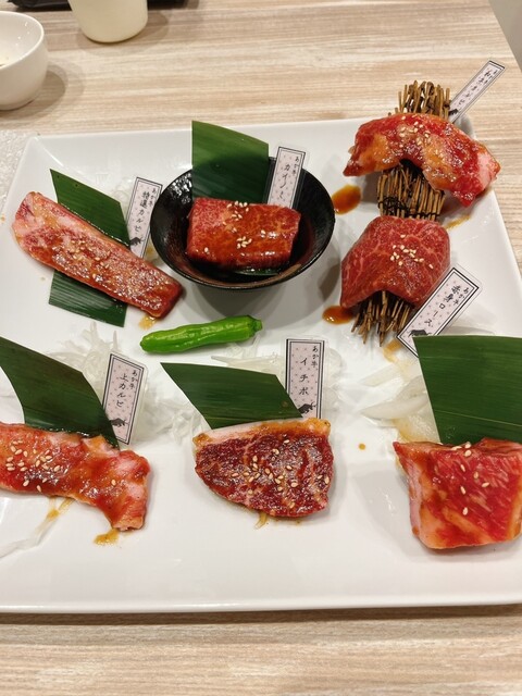 日曜日18時に予約で訪問。新オープンしたお店のようでお店がとてもキレイ!キッズドリンクが無料で嬉しいサービスもあり、赤牛の盛り合わせは5000円以上の注文でサービスされるチケットがあった為無料!ユッケ...