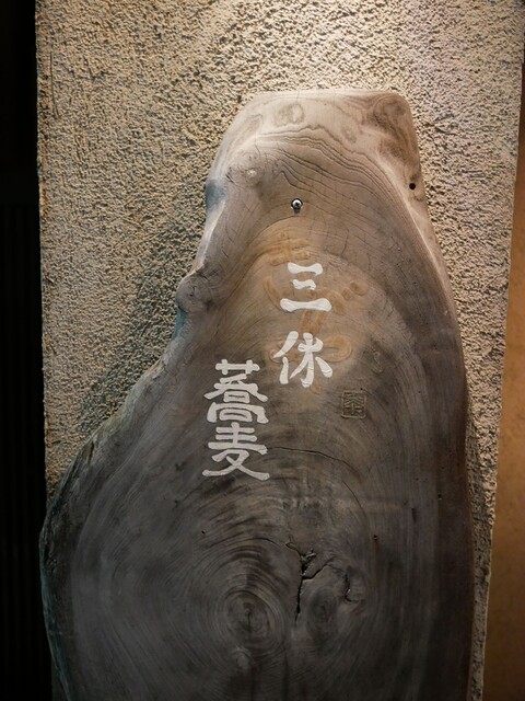 三鷹駅南口の大通りを直進して徒歩8分程度にある蕎麦屋。天然木の看板や店頭の草木が周りの住宅に溶け込んでいます。