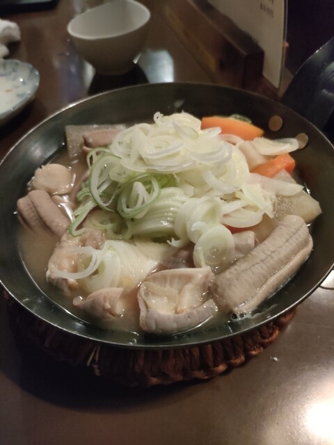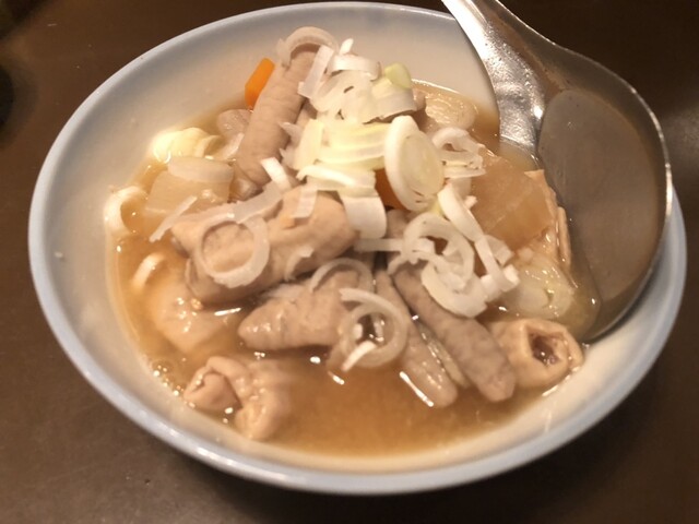 もつ焼きはいい感じの火入れで美味い、いか人参...