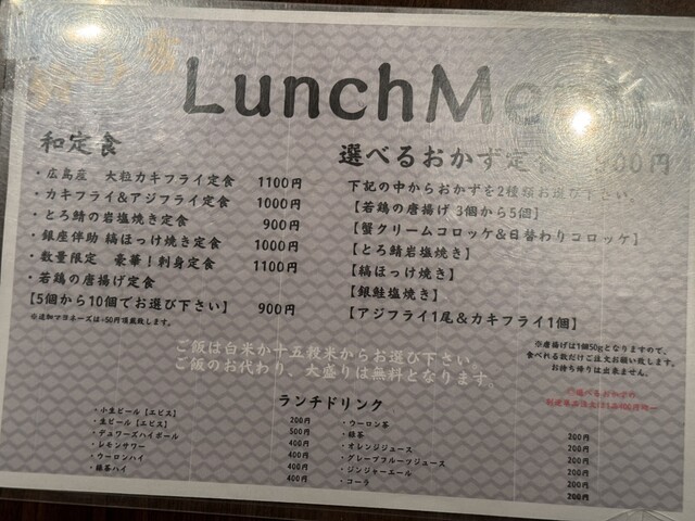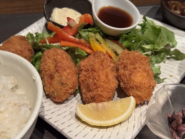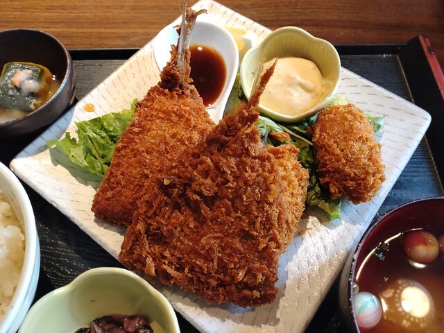 すんなりと席に案内され、カキフライ&アジフライ定食とア...