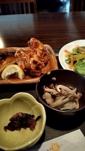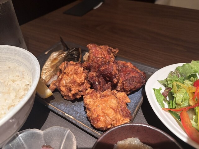 久々のランチに訪れました 鯖の塩焼きと定番の唐揚げセット 唐揚げは五個まで付いてきますがとても食べられないので二個にしました 鯖は脂が乗っていて焼き加減も良くホクホクで美味しかったです 予約時間より早...