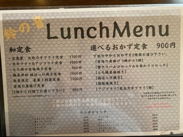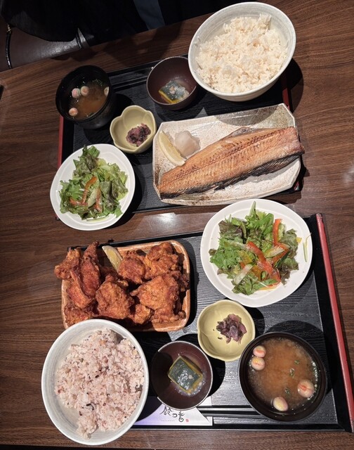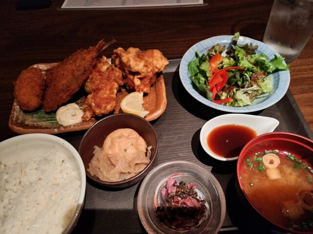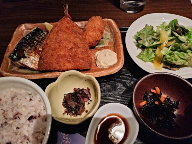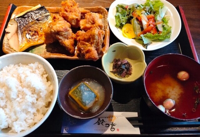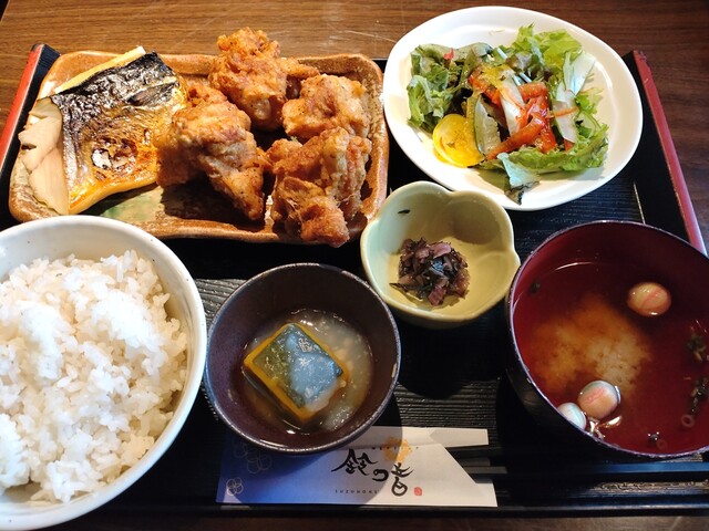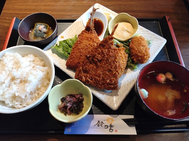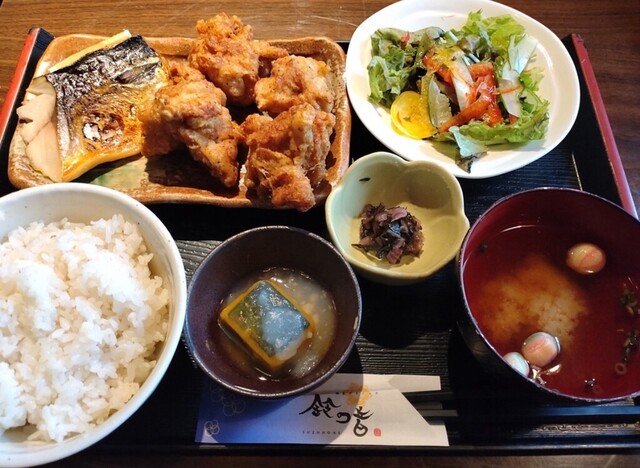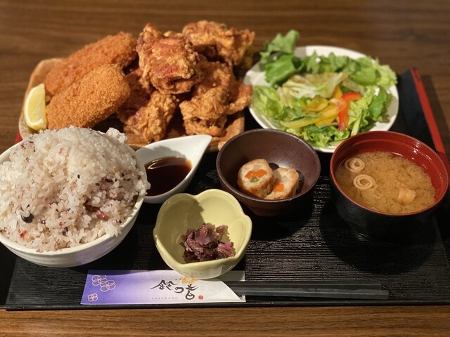 鈴の音のカキフライ&アジフライ定食(和定食)、若鶏の唐揚げ3個から5個(4個)+とろ鯖岩塩焼き(選べるおかず定食)