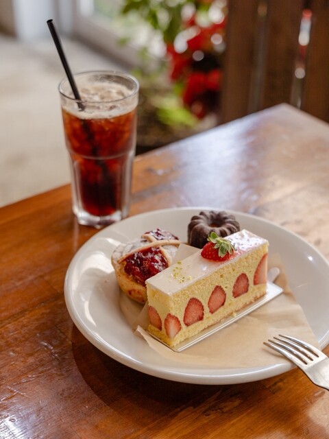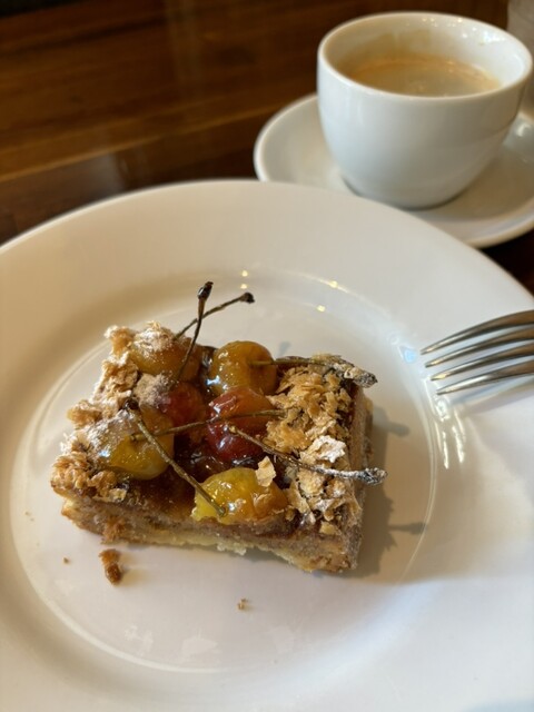 訪問先の近くでカフェを探してここへ。本日のケーキ、丁寧に処理したチェリーがいくつも乗っていて、美味しかったです。照明の関係か、ちょっと暗くてケーキの色合いがわかりにくかったですけれど。席は落ち着いてい...