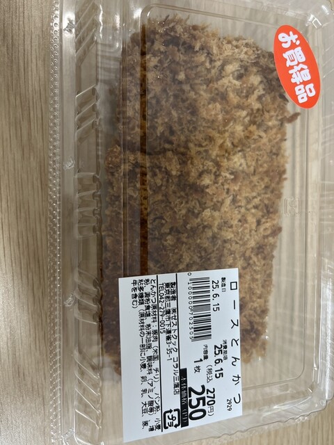 惣菜屋。いろんなところで見かけるけど安いんですよね。 ロースカツ。税別250円。 サイズが大きい。肉を叩いて伸ばしている感じかな。ある程度の柔らかさがある。あと、衣が結... 詳細を見る