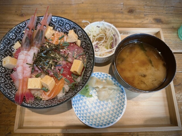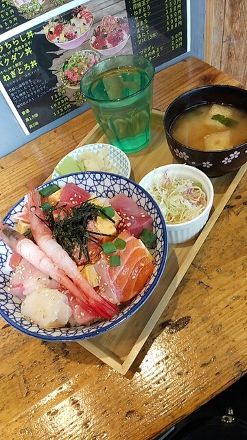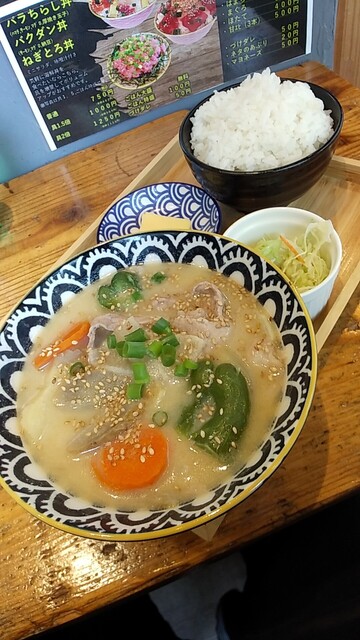 三鷹駅南口から徒歩3分程度の場所にある海鮮丼がメインのお店。2週間に1回の三鷹での私用の際、弟と一緒にランチを食べているのだが、当店を初めて利用したのは昨年12月のこと。たまたま当店の前を通り掛かり、店頭に出ていた「豚汁定食」と記載された幟が気になったのが初訪のきっかけ。その後、細々と訪問を重ねて計5回になったことから、そろそろレビューをアップすることにしよう。