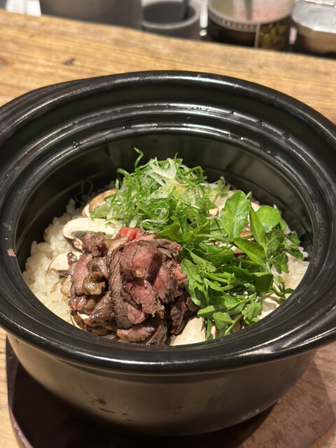 ▷オリーブ牛と六甲シャンピニオンの土鍋ご飯
