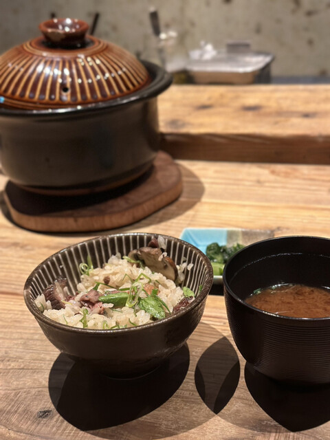 最後の土鍋ごはんもお肉がたっぷり入っていて味付けのバランスがかなりちょうど良くおいしい!