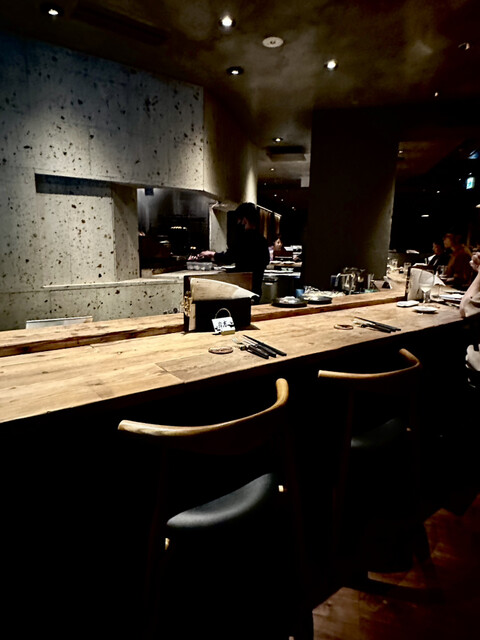 この日は薪焼きの焼き場や調理の様子も見えて五感で楽しめるカウンター席を利用させていただきました。