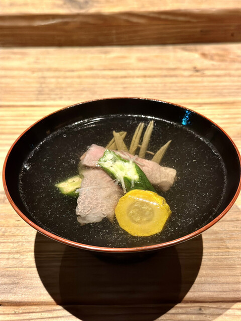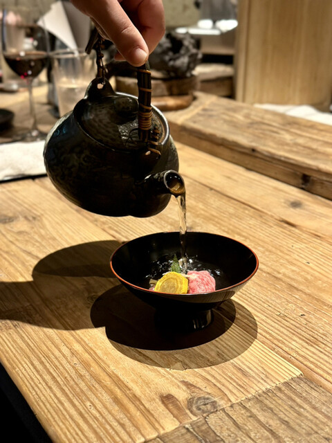 オリーブ牛のリブとろ椀しゃぶは、目の前で出汁を注いでくれます。
