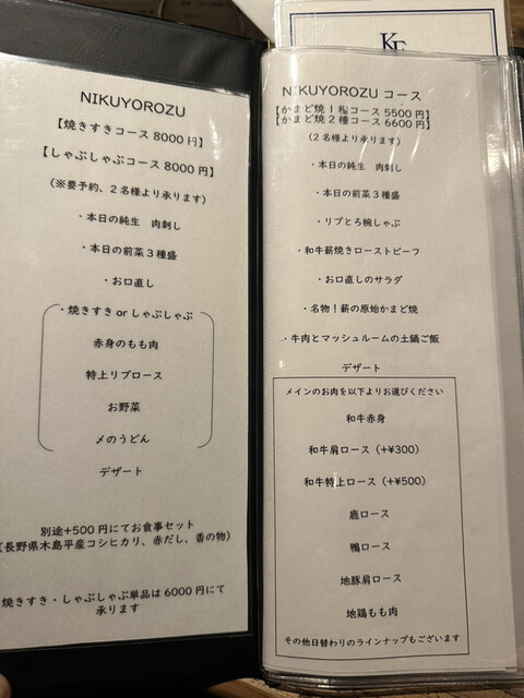 【薪焼き2種】NIKUYOROZU コース 6600円