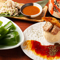 ■サラダ ■砂肝コンフィと肉味噌パリパリピーマンの2種盛り ■白センマイ刺し ■にんにく不使用お出汁のからあげ ■鉄板で作るアンチョビポテト ■明太出汁巻き ■具沢山ソース焼きラーメン ※女性の方はアイスサービス ※+1500円で1時間延長できます!楽しい時間を延長しちゃいましょう♪