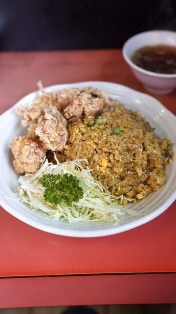 しっとり系で、チャーシューとのバランスもバッチリです。唐揚げは揚げたてで熱いくらいですが、絶妙な...