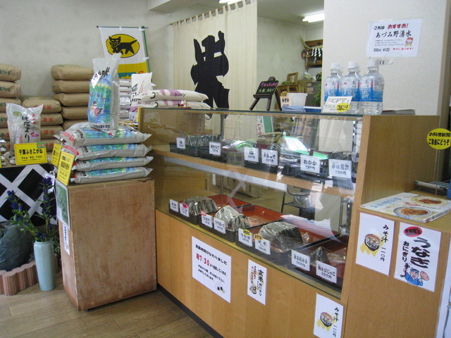 コンクリート造りの建物に入ると、精米店らしく、お米が山積みにされて販売されています。