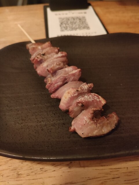 大ぶりの鶏レバーが三つ串に通されている。