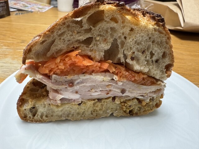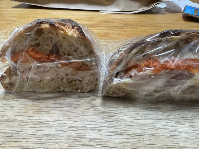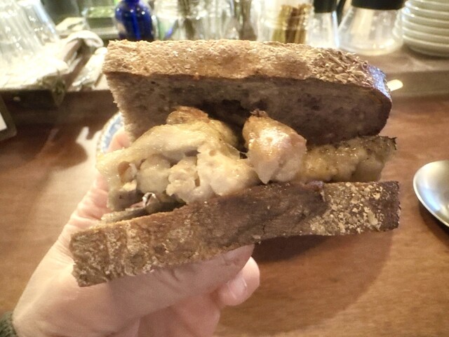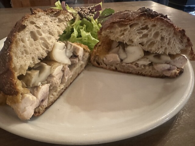 ほぼ1年ぶりの再訪。チキンと舞茸のオーブン焼きのサンドをくるみの全粒粉パンでオーダー。くるみの全粒粉パンはガリっとトーストされていて、くるみがゴロゴロ入って香ばしく鶏肉がふく...