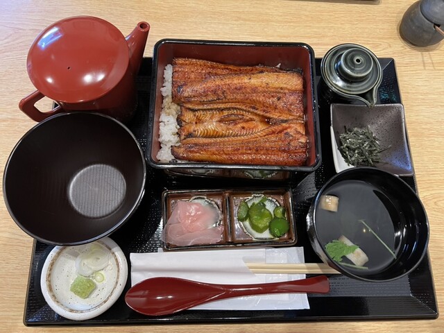 特上うな重の竹をいただきました。うなぎのボリュームはこれで十分、ご飯は気持ち少なめでありがたい。うなぎもふっくらしていて美味しかったです。ネギとわさびのトッピングも合いますね。アンケートに答えるとシュ...