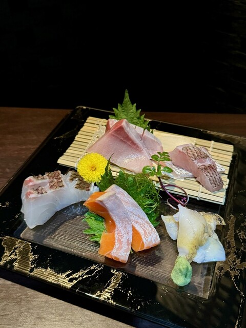 今回は友人の誕生会で利用させていただきました。 お造りの他に秋のメニューを味わいました。 ビールの後に白ワインをボトルで。ソムリエの女将さんが選んでくれるワインは、お手頃な値段で美味しい。 里芋の揚げだし、きのこの酒盗オイル煮、トリュフ香る 炙りベーコンと生コショウのポテトサラダをいただき... 詳細を見る