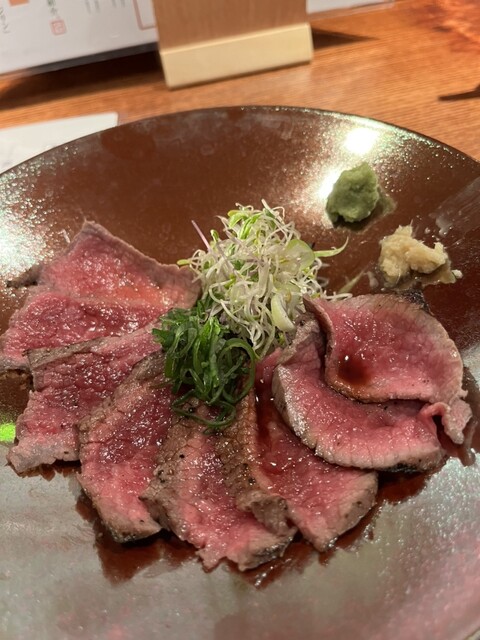 注文は生牡蠣、和牛たたき、カツオ刺身と王道で行きました。