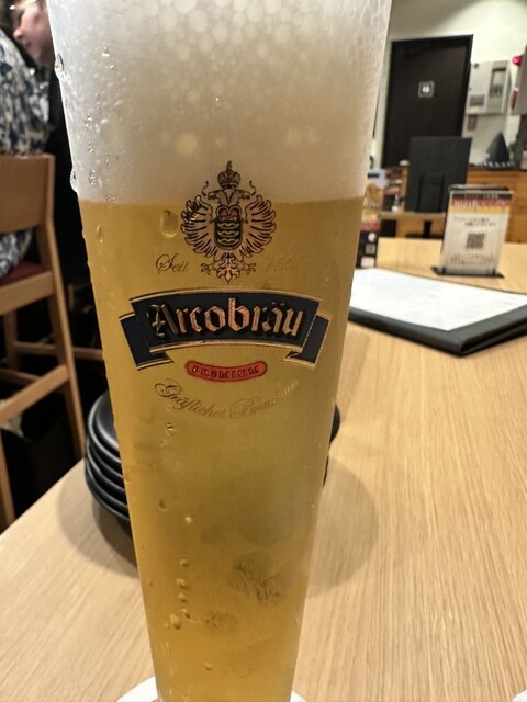 駅近の2階にあるお店です。メニューにはドイツビールが10数種類と豊富。今回は白ビール(ヴァイスビア)をいただきました。 アルコブロイ・ヴァイスビアヘル(レギュラー約300ml、税... 詳細を見る